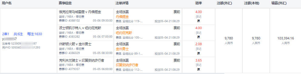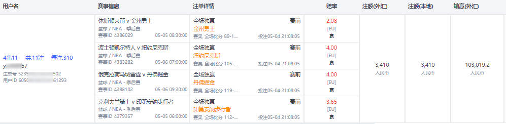1.熊猫体育平台NBA季后赛的相关赛事:首次单笔投注;