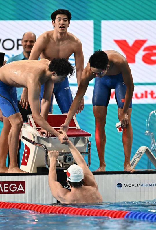 最终,中国队在潘展乐的带领下顺利夺冠,拿下男子4x100米自由泳接力冠军,潘展乐成为最大功臣。